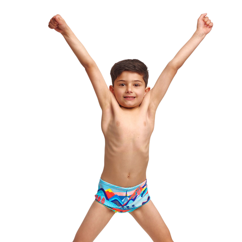 Вы узнаете своего ребенка с первого взгляда в симпатичных детских плавках с принтом от Funky Trunks. Манжеты эластичные и могут быть зафиксированы с помощью встроенного шнурка для лучшей фиксации.